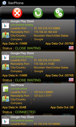 OS Monitor和Connection Tracker列出了连接(来源:Google Play;点击图片放大)